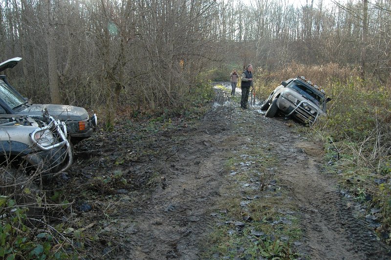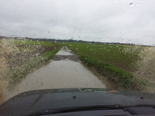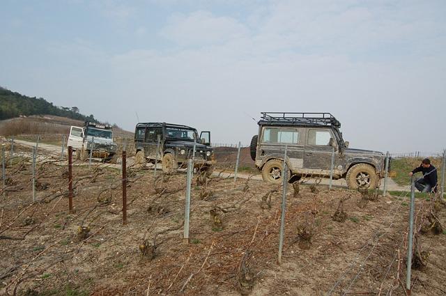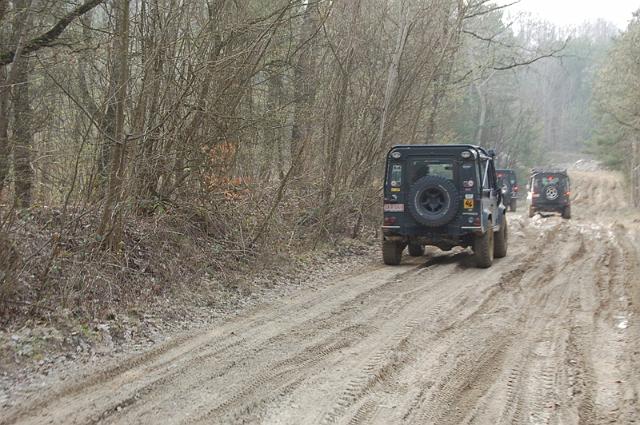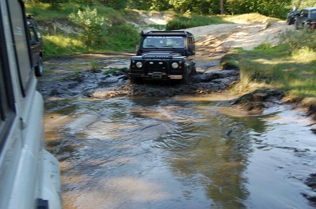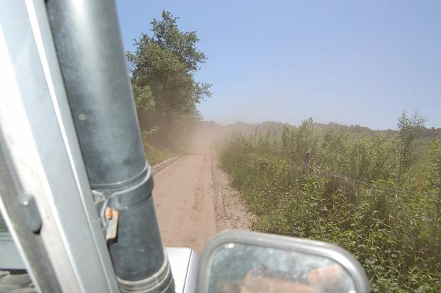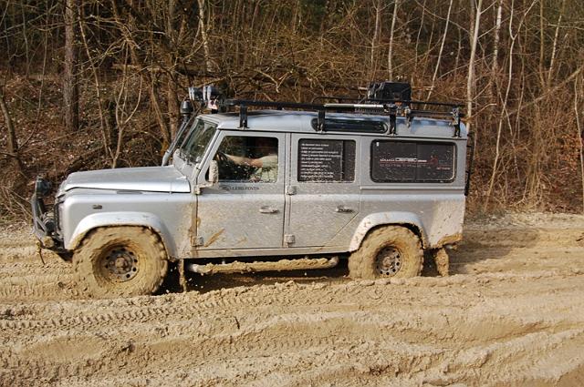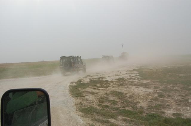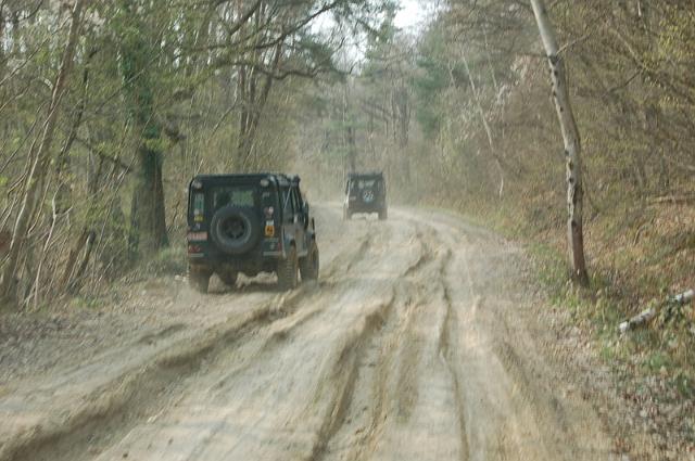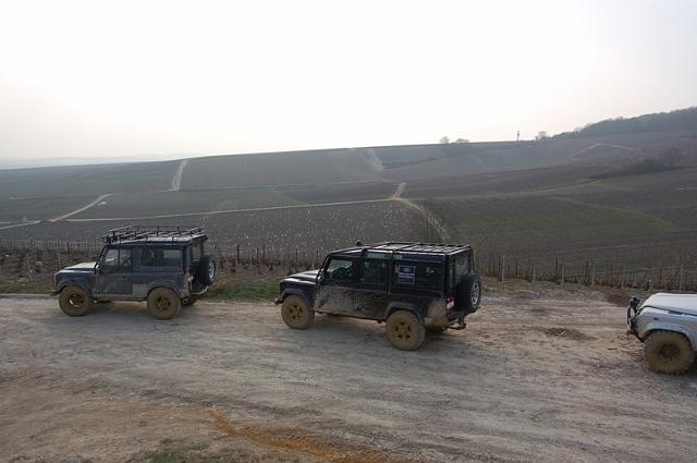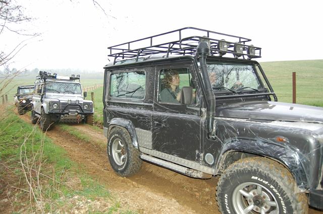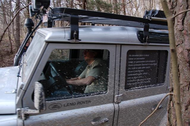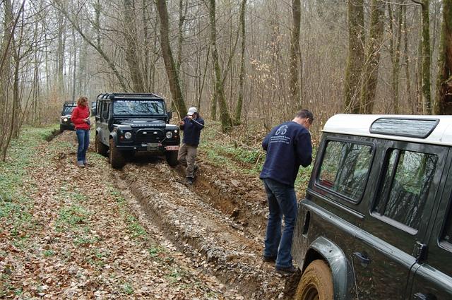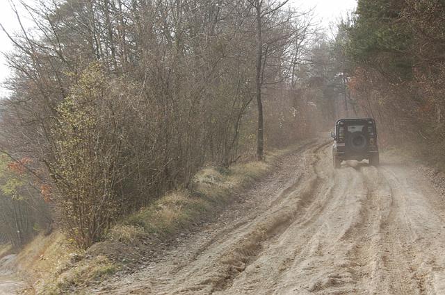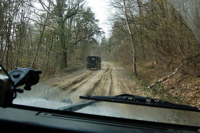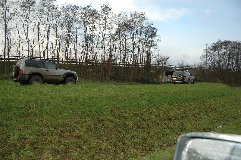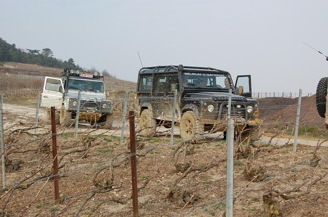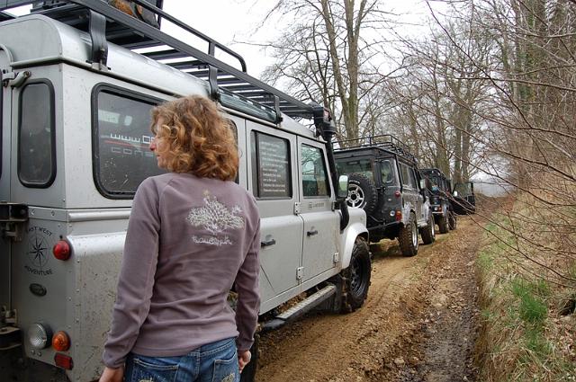 We vertrekken aan het benzine-station op de E40 waar we direct de velden intrekken. Door recente regen zijn de wegen modderig en het duurt dan ook niet lang voor de wagens onherkenbaar de streek doorkuisen.