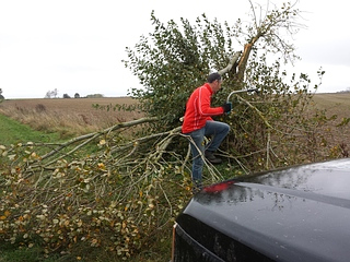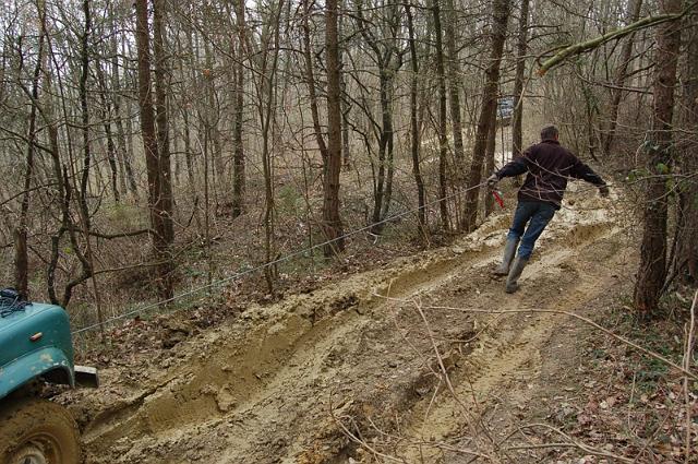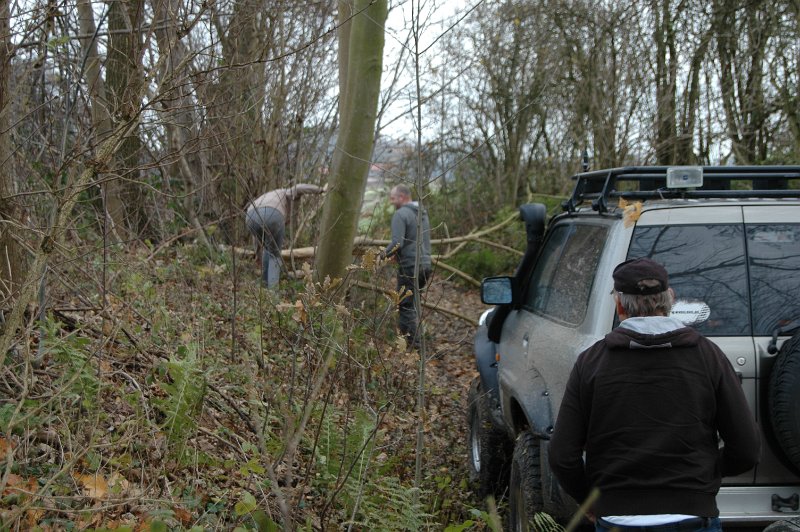 Bij het doorkruisen van velden, doen we soms beroep op topografische kaarten daar de originele GPX bestanden niet altijd nog correct zijn. Hierbij vinden we rond Bierbeek enkele leuke stukken waar wat bomen en takken moeten weggehaald worden voor we de weg verder kunnen zetten. Rond de middag gaat het bij een veldweg verkeerd. We moeten achteruit terug waarbij een wagen wegglijdt in de gracht. Winchen !
