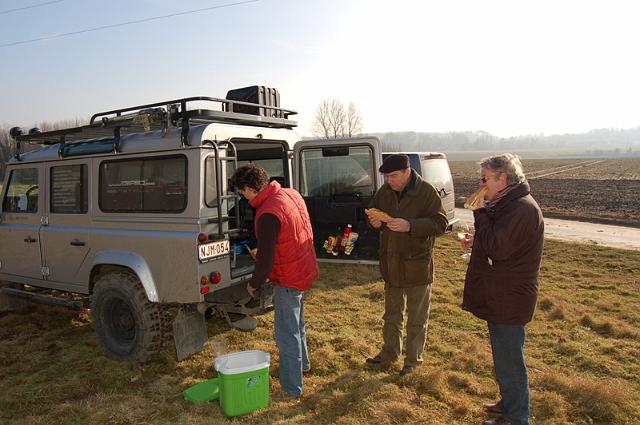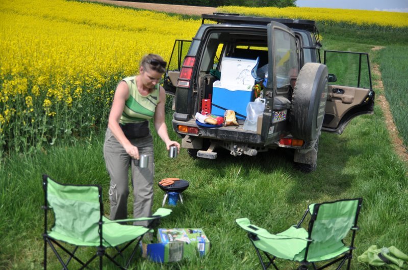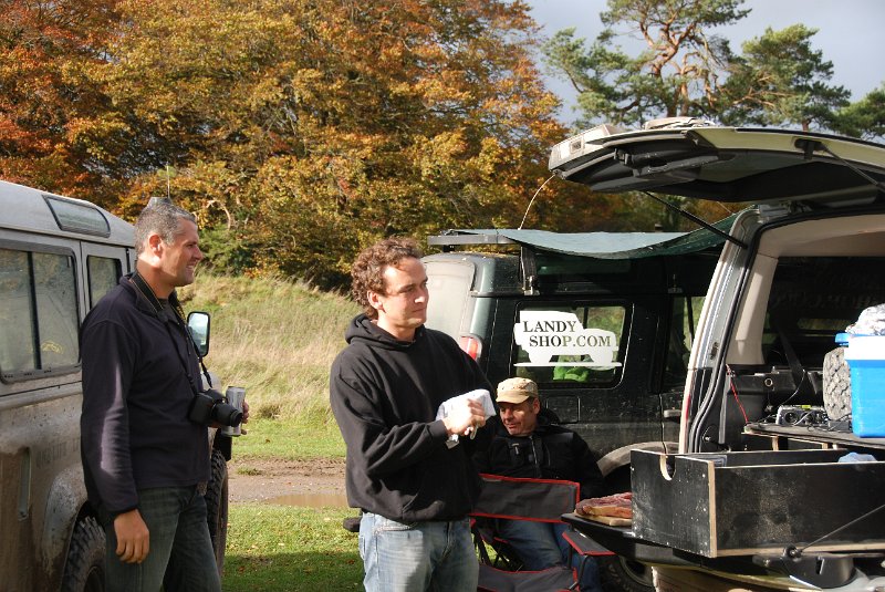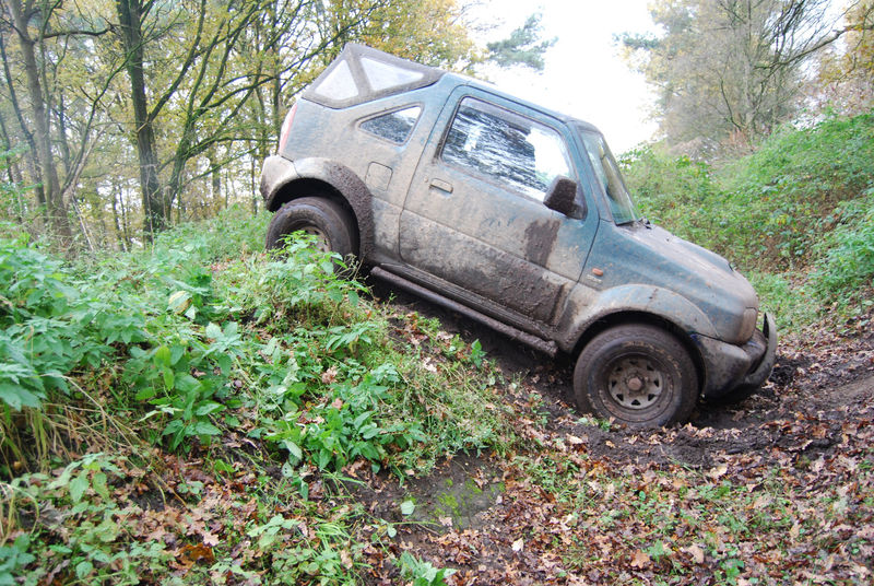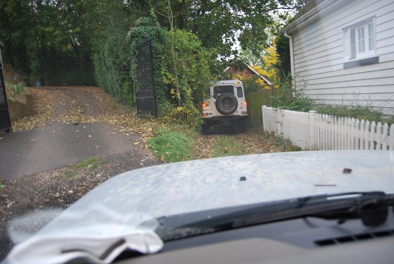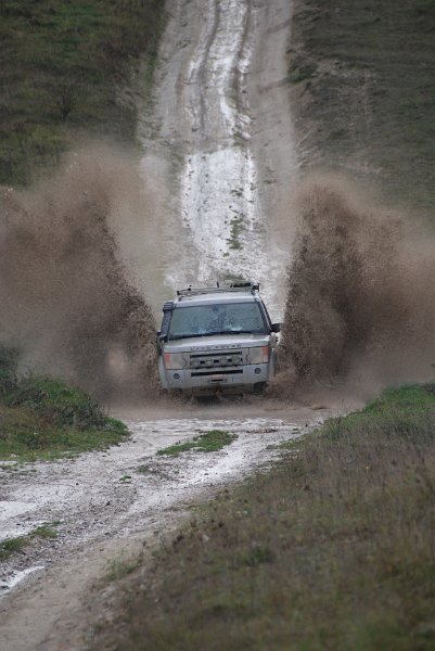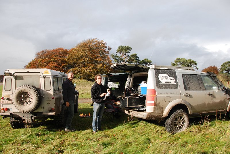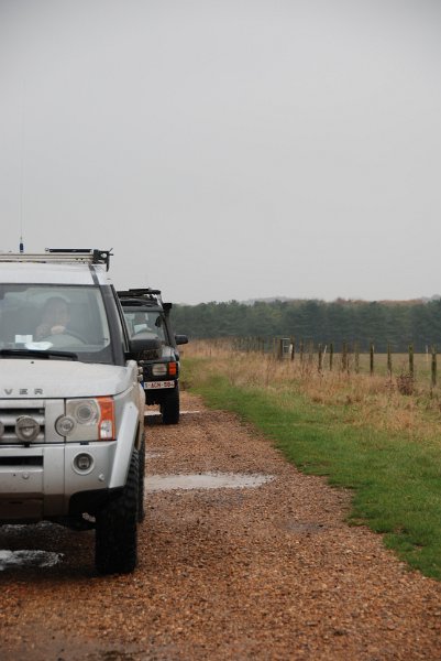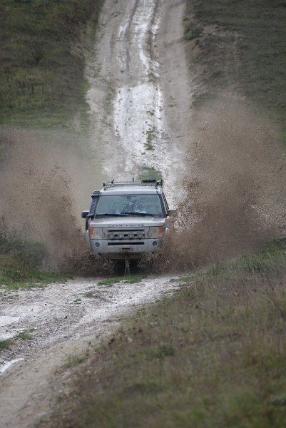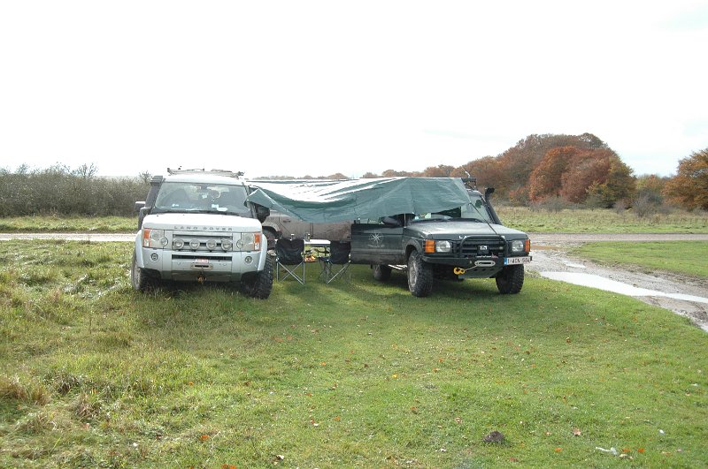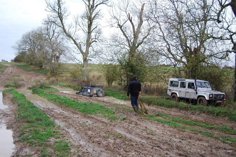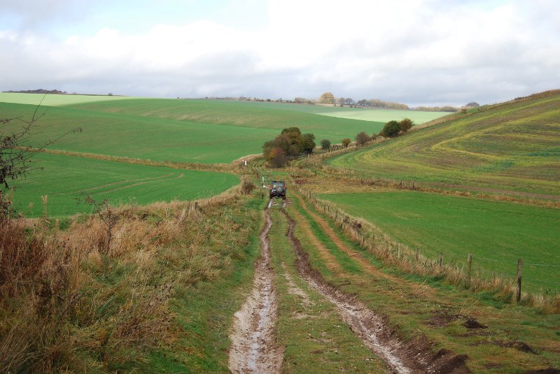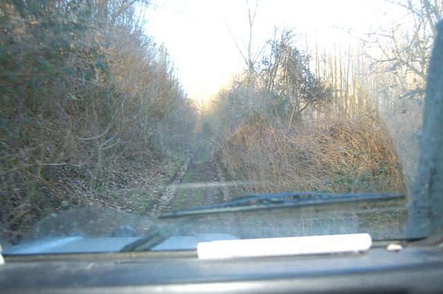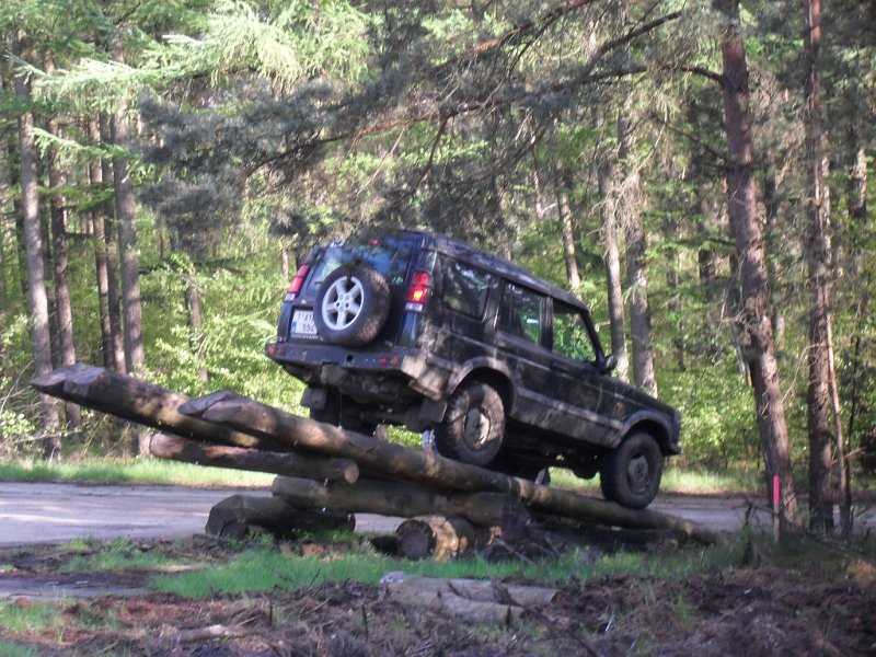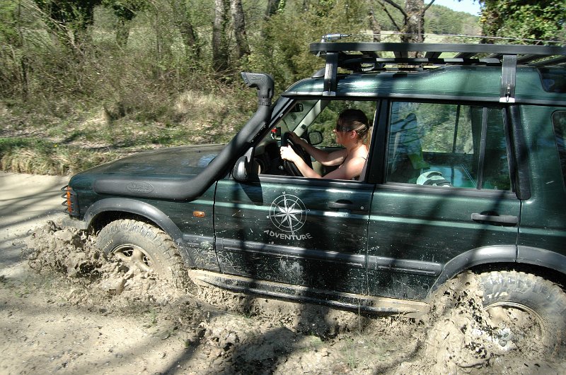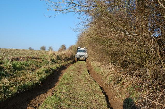 Na de doorwading gaat het verder via bossen en velden. Krasvrij is de rit zeker niet maar het is ook geen wagenbreker. Bij het stukje extreme is de Def90 in staat de bocht te nemen maar door de roofrack in combinatie terug met een lange body, blijft de Disco2 hangen in de bomen en moet ik terugdraaien. Wel eens leuk om te proberen. Het gaat nu verder richting einde en een van de laatste stukken is een grasstrook tussen twee velden. Makkie dus ..... dachten we.