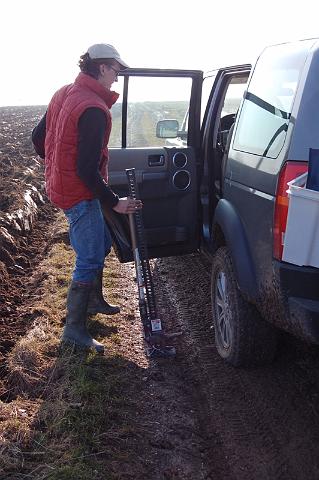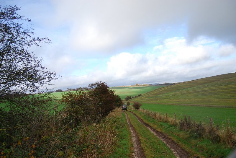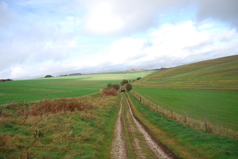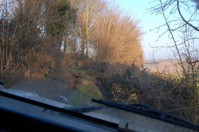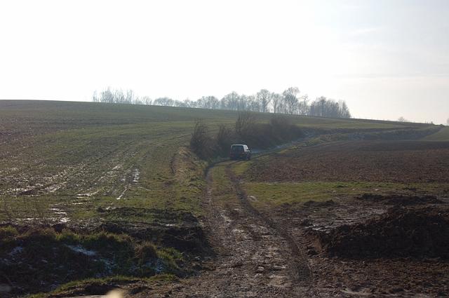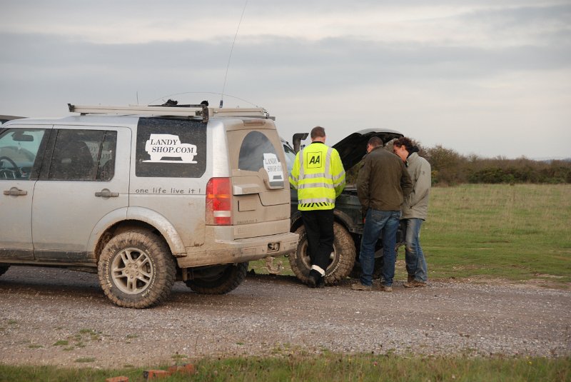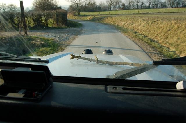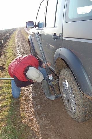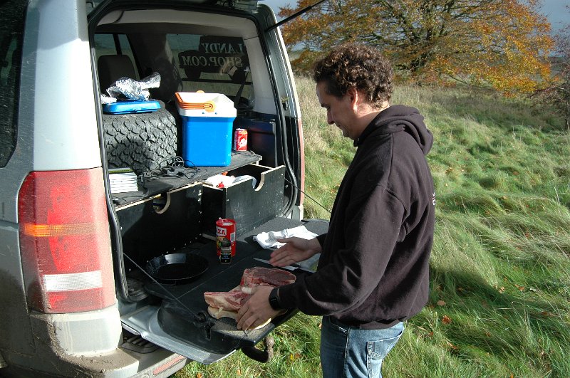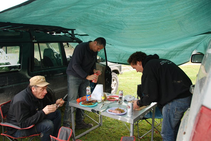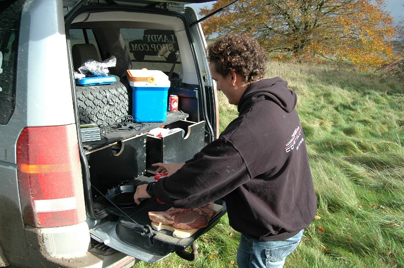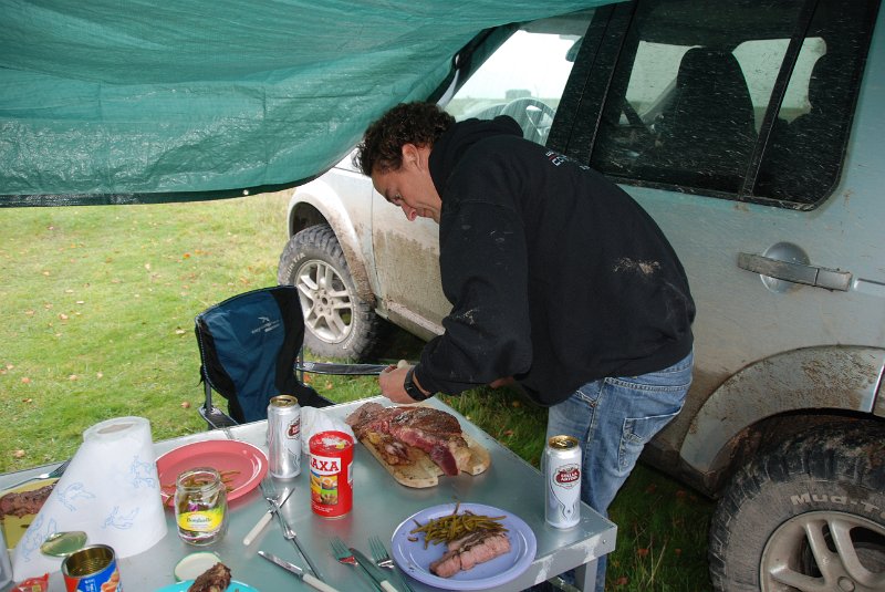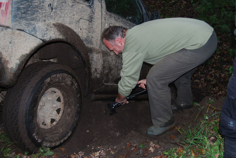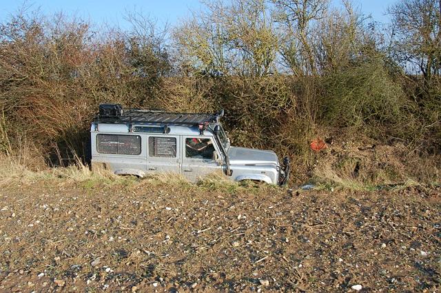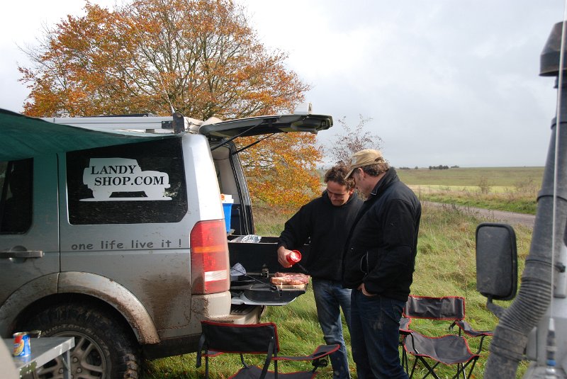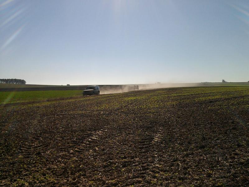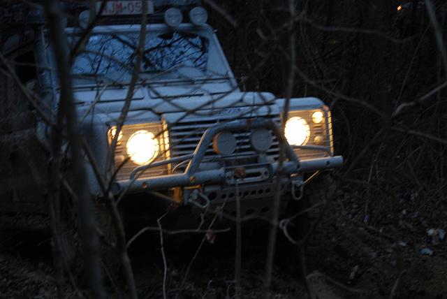 Na de doorwading gaat het verder via bossen en velden. Krasvrij is de rit zeker niet maar het is ook geen wagenbreker. Bij het stukje extreme is de Def90 in staat de bocht te nemen maar door de roofrack in combinatie terug met een lange body, blijft de Disco2 hangen in de bomen en moet ik terugdraaien. Wel eens leuk om te proberen. Het gaat nu verder richting einde en een van de laatste stukken is een grasstrook tussen twee velden. Makkie dus ..... dachten we.
